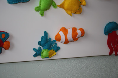 The Perks: In my house, craft time is sort of sacred. When I decided to make these, I wanted to be able to get a lot of use from them (this took a very long time). I think that even when they're not being snatched up with a fishing pole, they make a really nice Under the Sea display. Don't you see Flounder in there? And Nemo? There's also a Lemon Butterfly Fish, a Parrot Fish, Threadfin Butterfly Fish, a couple Jelly Fish, a Sea Turtle & Seahorse.